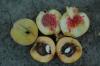 Note the gray lesions with purple borders on this 'Elberta' fruit.