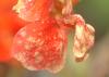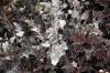 White superficial powdery colonies have developed on leaves and stems of this purple ninebark.