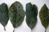 Close-up of a leaf spot caused by Phoma lingam on a Brassica leaf. Note the tiny black dots which are the pycnidia.