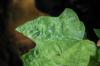 The green island effect is easily seen on this detached maple leaf. The effect is thought to be due to the production of cytokinins by the fungus.