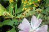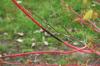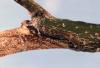 Note the numerous, small, pinkish fruiting bodies of the fungus along this branch.