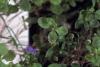 Note the necrotic leaf margin and spots on the center leaf due to INSV.
