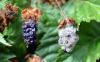 Blackberry rust on wild Himalayan blackberries found along a fence near cultivated blackberries.