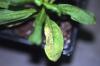 Downy mildew symptoms on top of leaf (top image) and underneath leaf (bottom image).
