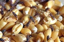 Inspect stored grain once a month. You can detect infestations using a grain probe or by hand. Hot areas generally indicate an infestation. Watch especially for signs of crusting near the top-center and outside edges. You might see live insects and damaged kernels on the surface, especially at the crown. Surprisingly, large populations of these pests can develop by mid-winter. Light traps, pheromone kits, and other types of traps are available for collecting, detecting, and monitoring many pests.