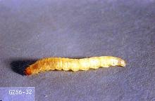 Pest description and crop damage Early instar larvae are light green/yellow with dark stripes down the back; older larvae can be up to 0.75 inch long and are yellow/tan with a brown head. They feed inside mint rhizomes and on mint roots, from late July through September and early October in some years. This pest can severely reduce stands in most mint-producing areas.