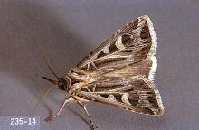 Pest description and crop damage Forewings of the darksided cutworm are usually light, powdery, and grayish brown with indistinct markings. Larvae are pale brown dorsally and white on the ventral areas, with indistinct stripes on the sides. Redbacked cutworm adults have reddish brown forewings with bean-shaped markings. Larvae are dull gray to brown with two dull reddish stripes along the back. Dingy cutworm adults have dark brown forewings with bean-shaped markings. Hind wings of the male are whitish with a broad, dark outer margin; hind wings of the female are uniform dark gray. Larvae are dull brown with pale shading along the back. Cutworm damage normally consists of stems cut 1 inch below the soil surface to as much as 1 to 2 inches above the soil surface. Young leaves may be severely chewed by cutworms that climb up to feed on plant foliage.