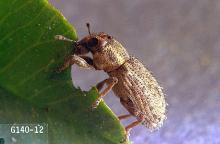 Pest description and crop damage Adults are grayish weevils about 0.16 inch long. Larvae feed on fibrous roots and chew cavities in main roots but usually do not significantly reduce yield. For additional information, see: https://drive.google.com/file/d/1HN0Q1ZMHLPELWMTjSQQhldxyWo85XX-7/view