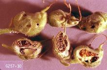 Pest description and crop damage The small greenish larvae mine leaves. Later, they feed on terminal leaves and bore into developing flowers and inside the stems. Adult is grayish brown with narrow plumed wings and a 0.5 inch wingspread.