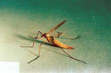 Pest description and crop damage European crane fly (ECF) is a native of western Europe which was introduced to eastern Canada and found in British Columbia in 1965. The mild winters, cool summers and relatively abundant rainfall in the PNW are ideal for this insect and its range now extends as far south as central California. It has been documented east of the Cascades in Spokane, WA and Bend, OR. The adult is a large two-winged fly that is often compared to a large mosquito. ECF has one generation per year. The larvae are wormlike, with leathery skin, 1 to 1.5 inches in length. Larvae hatch in late summer (Aug.-Sept.) and feed through winter and into spring, causing the most damage in the spring (April and May). European cranefly larvae feed on turfgrass shoots, crowns, and roots. Affected turf areas often thin out severely in early spring when normal turf starts vigorous growth. Starlings and other birds are attracted to affected turf and may damage it as they search for larvae.