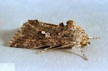 Pest description and crop damage Moths of both species are grayish to light brown; front wings have a single white "teardrop" marking. Mature larvae are about 1 inch long, light green to olive-green, with a pale head. Three pair of abdominal prolegs distinguish loopers from other pest "worms." They move in a looping fashion. Field populations of larvae in eastern Oregon are usually controlled biologically by native parasitoids or naturally occurring disease.