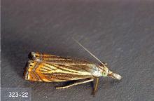 Pest description and crop damage Moths have protruded snouts projecting from the head. Moths are about 0.33 inch in length with colorful iridescent scales on the wings and body. Eggs are scattered on plant crowns and the soil surface.