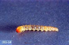 Larvae are creamy white or pinkish with a light brown head. Small hooks on the abdominal prolegs are in circles or ovals, distinguishing them from armyworms or cutworms whose hooks are in a line. Larvae feed on and in crowns and roots of most grasses and can seriously injure established stands wherever grass is grown for seed.