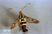 Pest description and crop damage The strawberry crown moth is an insect native to the PNW and has caused damage to strawberries in the northern Willamette Valley. The adult strongly resembles a yellow jacket; it is about 12 to 15 mm in length, black with yellow markings. The eggs are brown, oval, sculpted on the surface, and distinctly cupped on the sides. The larvae are white with a brown head, and 16 to 25 mm in length at maturity. Larvae feed on the crown and root tissue of the strawberry plant. This feeding provides entry points for root pathogens. Injured plants are stunted, may produce reddish foliage, and yield poorly. Tops of damaged plants are easily separated from the root system if pulled on, which quickly distinguishes this damage from that caused by root weevils. Damage is sporadic and has been most severe in Washington County, Oregon.