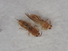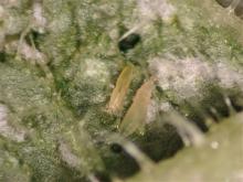 The pear thrips has only one generation and destroys the fruit buds and flowers of fruit trees during bloom. This pest has become a localized problem in the mid-Columbia fruit-growing area, especially in orchards that border habitat with native hosts such as maple and other deciduous trees. Use a beating tray during the pink stage to monitor and detect immigrating pear thrips along border rows of the orchard. Pear thrips is best controlled at the early pink stage.