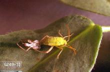 Generalist predators, such as lacewings and damsel bugs, may prey on lygus bug nymphs. Conserve populations of these biological control agents by minimizing applications of broad-spectrum insecticides.