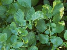 Symptoms Large, irregular, yellow to cream-color spots appear on leaves. Tubers may show internal brown necrotic areas.