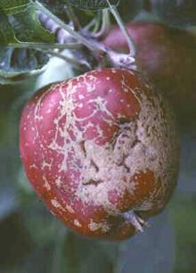 Several fungi can also russet fruit including Podosphaera leucotricha, which causes powdery mildew. Cultivars susceptible to powdery mildew, such as Jonathan and McIntosh, can develop this type of russeting. Aureobasidium pullulans and Rhodotorula glutinis are fungi common on the surface of apple fruit and leaves and have been associated with fruit russeting. Some biological control products contain these fungi and can increase fruit russet under certain conditions. Fruit are susceptible to this kind of russet during bloom and at least 4 weeks after petal fall. A study in Hood River, OR found that these later 2 fungi were not major factors contributing to russet of d'Anjou pear fruit.