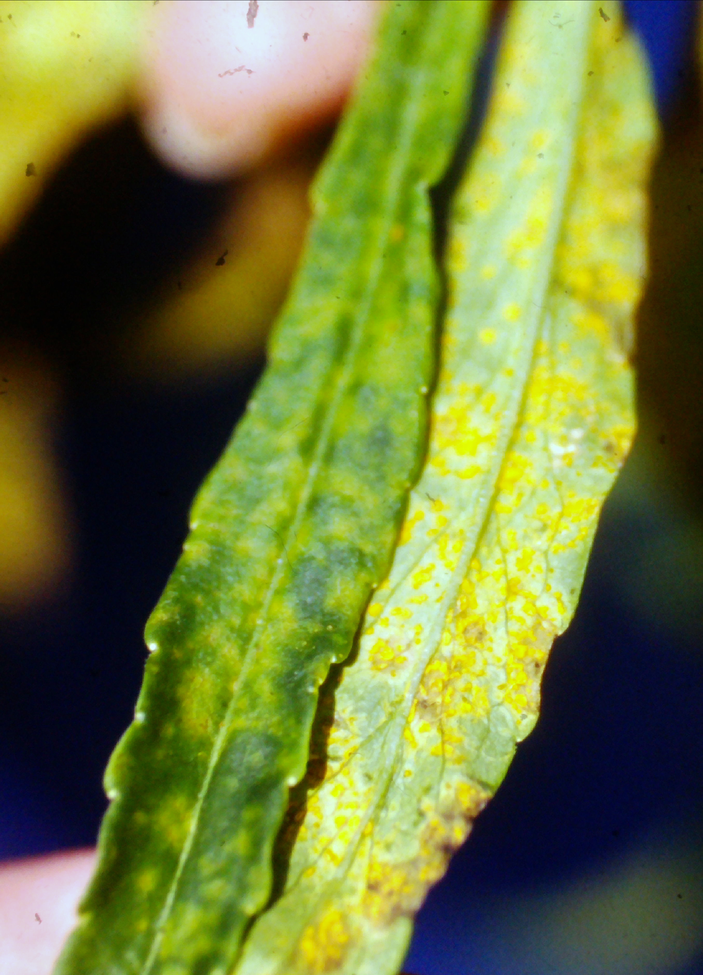 Cause Coleosporium campanulae has been reported from BC and Puccinia campanulae has been reported from OR, WA and BC. These are rust fungi that are obligate biotrophs, requiring a living host on which to survive and reproduce. They do not kill their hosts but through severe infections can reduce growth and cause leaf drop, decreasing the cosmetic value of bellflower plantings. Coleosporium campanulae requires Bellflower (urediniospores and teliospores) and pine (Pinus spp., pycniospores and aceiospores) to complete its life cycle. Urediniospores are capable of secondary infection of uninfected plants and plant parts and can be disseminated by wind and rain over short to relatively long distances. Puccinia campanulae only requires Bellflower in order to survive and reproduce, with teliospores serving as the resting structure and basidiospores spreading the infection. Coleosporum campanulae has been reported in British Columbia and observed in Oregon while Puccinia campanulae has been reported in Oregon and Washington. Mild, moist conditions are most conducive to rust infection due to the spores' requirement of free water on the leaf in order for infection to take place.