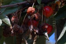 - Remove and destroy all mummified fruit in and around the tree. Cultivating or burying old fruit before the growing season will not reduce the risk of this disease. However, removing fallen fruit (due to thinning or lack of pollination) can significantly reduce the amount of rot at harvest.