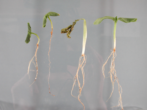 Cause Several fungi or fungus-like microorganisms including Pythium aphanidermatum, Globisporangium irregulare (formerly P. irregulare), G. ultimum (formerly P. ultimum), P. myriotylum, Fusarium sp., and Rhizoctonia sp., which live in soil and attack seedlings of many different crops. As seedlings mature, they become resistant to attack. The disease can be a serious problem in cool, wet soils.