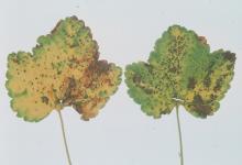 On currants, fruit as well as leaves may show spotting like fly specks. Severely infected berries crack open and drop.