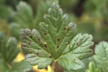 Cause Drepanopeziza ribis (asexual: Gloeosporidiella ribis), a fungus that overwinters on dead leaves. Small, mushroom-like fruiting bodies (apothecia) develop on fallen leaves in spring. They produce airborne ascospores that infect newly developing leaves. Rainy weather favors spore release and infection. Different fruiting bodies (acervuli) are produced in 3 to 4 weeks after ascospore infection. Acervuli produce conidia, which are rain splashed and infect healthy leaves. The disease is serious in wet seasons. Older leaves of black currant were shown to be more susceptible to infection than younger leaves.