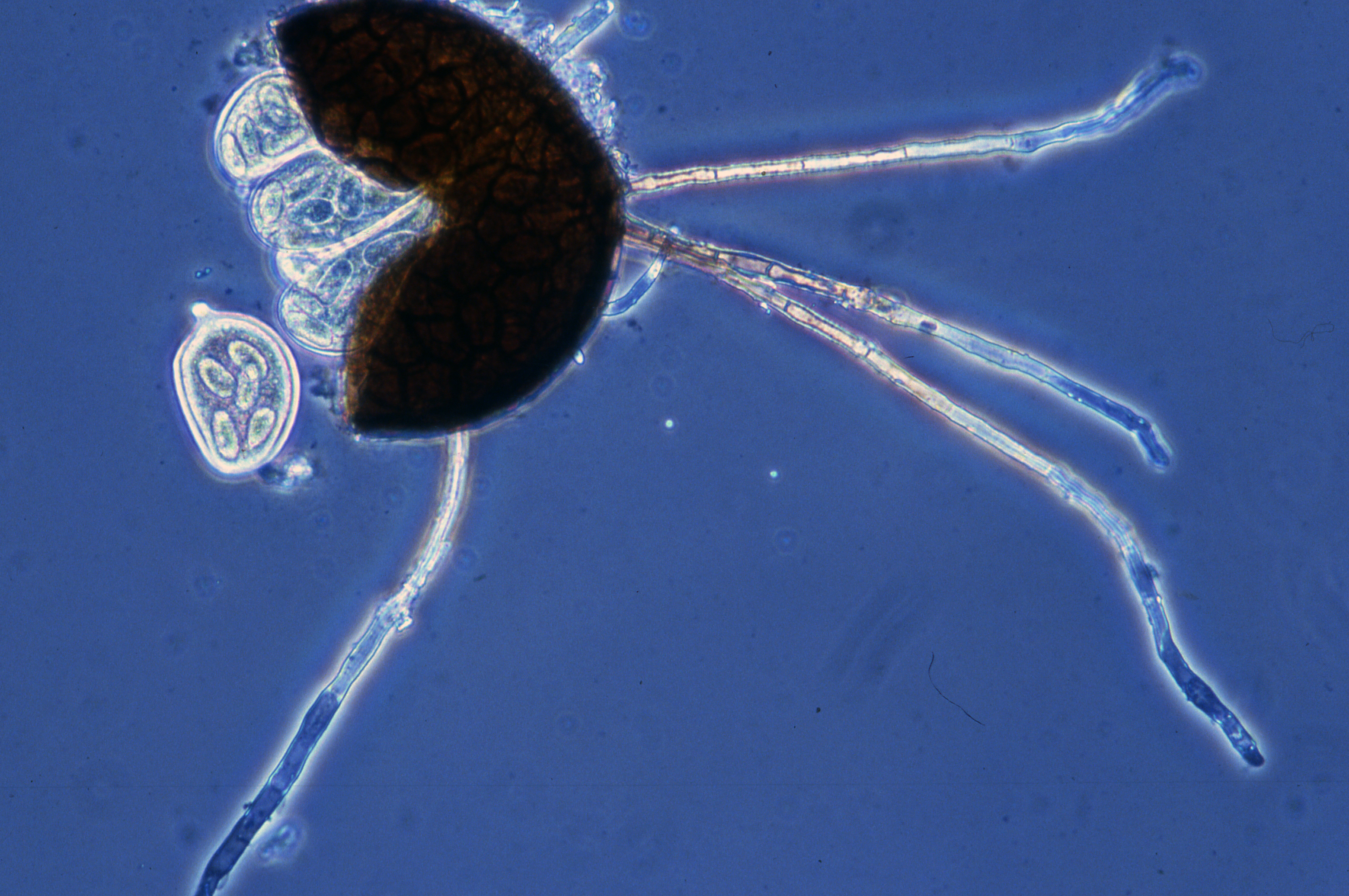 Many asexual spores (conidia) are produced on the surface of powdery mildew colonies. Under optimal conditions of mild temperatures and high humidity, a single spore can germinate, infect the plant, and produce a new colony and a new crop of spores in 3 days. Temperatures over 85°F and/or sunlight (ultraviolet) inhibit conidia germination. Unfortunately, nighttime ultraviolet -C treatments do not perform adequately when used as the sole control measure but can complement fungicide management. Nights where temperatures fall below 40°F can damage colonies, increase the time new ones form, and reduce their size. Free water from rain and/or irrigation can wash conidia off a colony, burst conidia, or result in poor or abnormal germination of conidia. Formation of new chasmothecia occurs around veraison and into the fall.