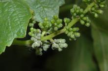 Cause Erysiphe necator (formerly Uncinula necator), a fungal disease common to all areas of the Pacific Northwest. The disease tends to be more severe on the west side of the Cascade Range but is a chronic problem in arid districts where over-the-canopy irrigation is used for early-season frost protection or watering. There is low tolerance to this disease on the fruit as it can impart negative tastes later in the wine. An infection of 3% to 5% of the berries results in an oily, viscous mouth feel in the wine. Vitis vinifera (European) cultivars are susceptible to powdery mildew while V. labrusca (American) cultivars are more resistant. Hybrids between the two species have various levels of resistance. Other hosts include Boston ivy, Virginia creeper, and Ampelopsis (porcelain berry). The fungus may overwinter as a group of thin threads called hyphae, inside the vine's dormant buds and/or as small black bodies (chasmothecia) on the exfoliating bark of the vine.