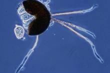 Buds on new shoots can be infected 4 to 6 weeks after shoots start growing but not after bud scales become suberized. These new infected buds remain quiescent until the next growing season. Shortly after budbreak, the fungus becomes active and covers the emergent shoot with a large white mass of mycelium ("flag shoots"). Flag shoots have rarely been observed in commercial western Oregon or eastern Washington vineyards.