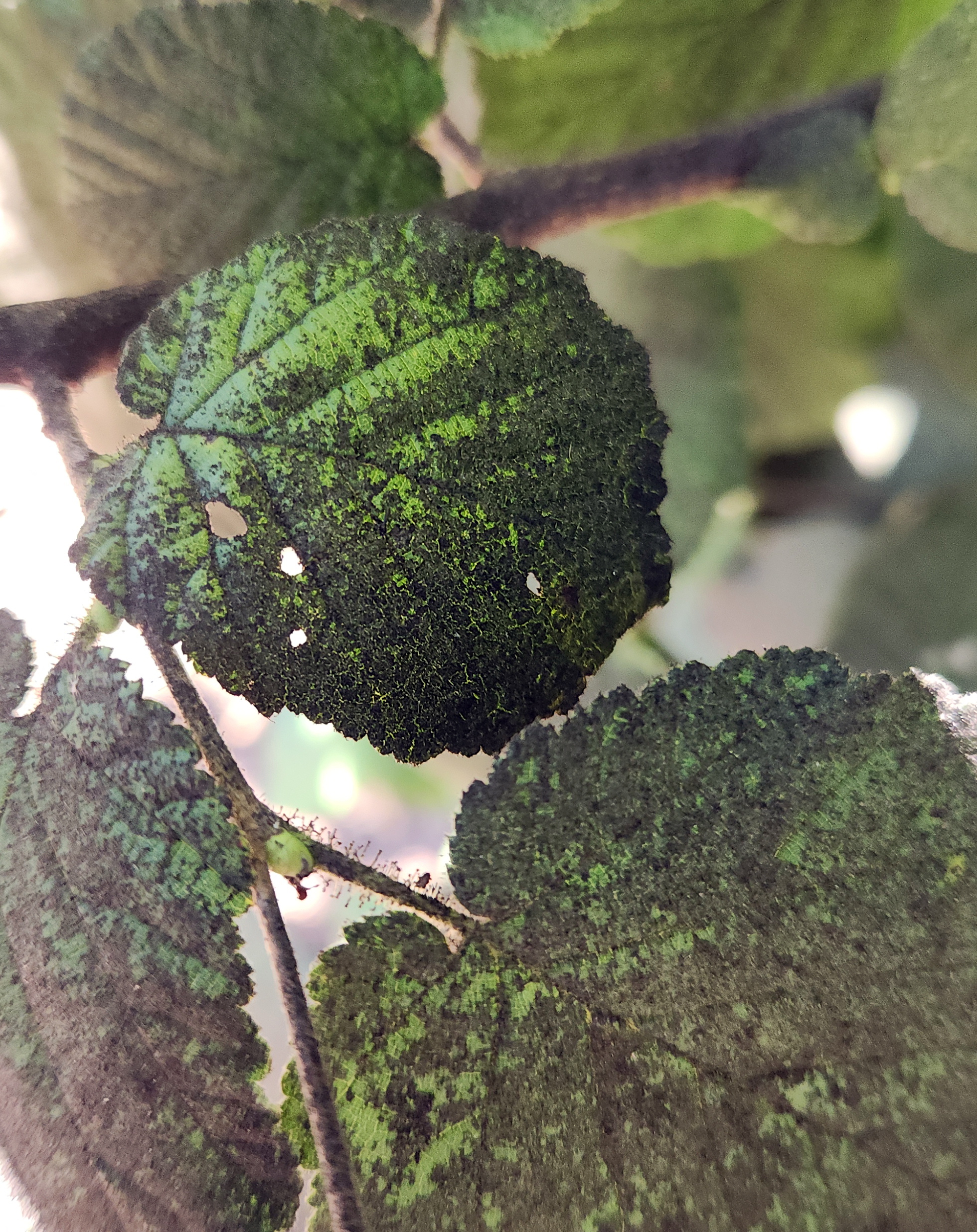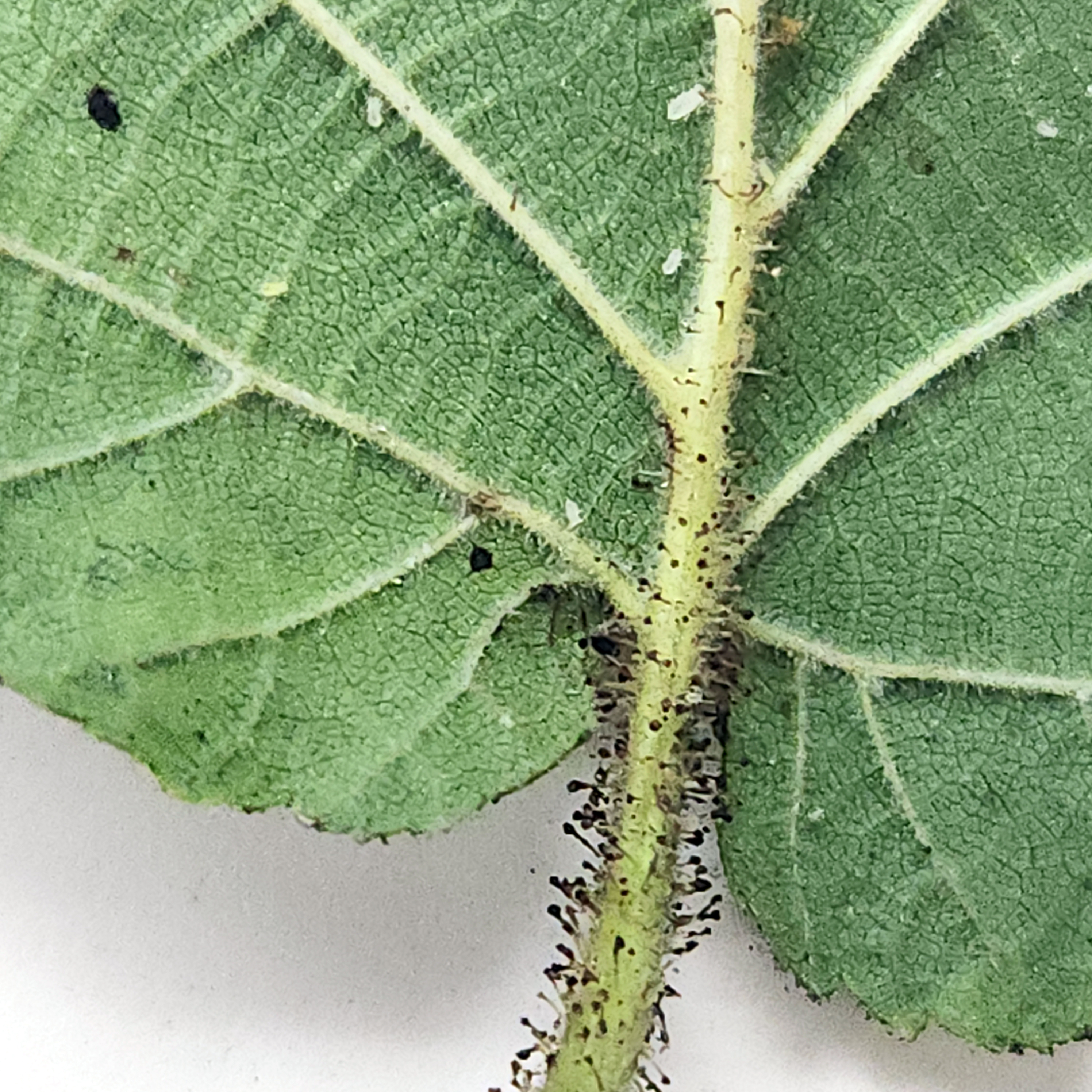 Insects on the underside of this leaf are responsible for the honeydew leading to sooty mold.