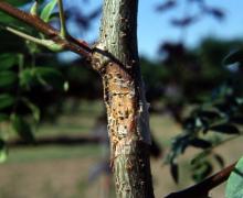 Fusarium cankers have been associated with cold events in the fall, early harvest times and wounding. Sawdust storage seems to increase the potential for this disease problem as well. In addition, some cultivars (such as Imperial) are more susceptible than others.