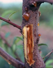 Reference Cao, T., McKenry, M.V., Duncan, R.A., DeJong, T.M., Kirkpatrick, B.C., and Shackel, K.A. 2006. Influence of ring nematode infestation and calcium, nitrogen, and indoleacetic acid applications on peach susceptibility to Pseudomonas syringae pv. syringae. Phytopathology 96:608-615.
