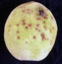 Notes: Sulfur-based products were ineffective when used for same disease on almonds.