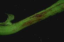 Leaves and stems are killed, and only the tip of the plant may remain green. In severe cases, vines collapse. Infection and vine collapse may be over large areas of the field. Late in the season, small black specks may develop in the powdery growth. These are chasmothecia, the overwintering fungal bodies.