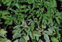 Cause The fungus, Golovinomyces orontii (formerly Erysiphe cichoracearum; anamorph Euoidium violae), is reported throughout the world on a wide range of hosts, but the strain on potatoes is a distinct physiologic race. Row-irrigated potatoes are more likely to show infection than sprinkler-irrigated.