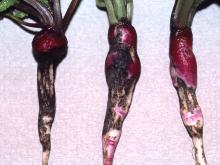 Cause Aphanomyces raphani, a fungus-like organism. The disease has been so severe in northwestern Oregon fields that the crop has been plowed under. The variety White Icicle is very susceptible. The fungus attacks primarily radish but also can infect many other crucifers.