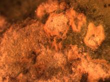 Cause Albugo candida, a fungus-like microorganism, can cause disease on crucifers in general including radish, rapeseed (canola), horseradish, arugula, leafy brassicas, head and stem brassicas, and wild mustards. In the Pacific Northwest, white rust can be severe on radish seed crops. Most round, red varieties and some daikon selections are susceptible. The pathogen overwinters as oospores in stagheads (galls formed on infected seed heads) or plant debris as well as mycelium in infected hosts. Pieces of staghorns are often found as seed contaminants and can be the primary source of infection in a field. The oospores can germinate and infect young plants, leading to pustules on leaves. Sporangia are produced in pustules and can be moved by wind, rain, or insects. Sporangia germinate, giving rise to zoospores. Zoospores are motile; they swim for a short distance and then invade the plant by germinating through the stomata. Sporangia require some drying in order to germinate but disease development is favored by moist conditions and temperatures between 50°F and 77°F. Dew, fog, or periods of extended rainfall and cool temperatures are ideal for zoospore activity. White rust often occurs alongside downy mildew.