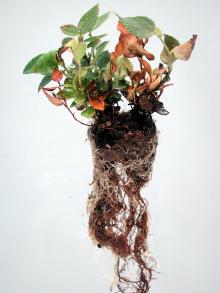 Cause Phytophthora cinnamomi, a water-mold, fungus-like microorganism. The disease is favored in potted plants on plastic sheets, which hold water around the pots. The disease can spread when the sheets are used under other pots. This microorganism survives as oospores or chlamydospores in plant debris such as rotted roots or foliage. Spores may be moved long distances in contaminated soil or through moving water. Spores germinate and produce sporangia and a swimming spore stage called zoospores, which attack fine roots and begin to rot the root system.