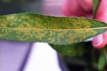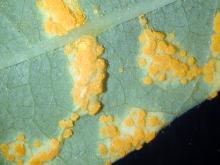 Cause Melampsora spp., fungi that overwinter on dead leaves and young infected twigs. Several species have been reported from all states including M. abieti-capraearum (with true fir, Abies spp., as the alternate host); M. epitea f. sp. tsugae (with hemlock as the alternate host); M. paradoxa (with larch as the alternate host); and M. ribesii-purpureae (with currant and gooseberry as the alternate hosts). Molecular evidence suggests that many more species could be described based on many factors including Salix sp. infected. The urediniospores can reinfect willow any time conditions are favorable. It can take two weeks to go from urediniospore infection to formation of new urediniospores. Telia are produced in late summer and fall. In the spring teliospores produce basidiospores that infect the alternate hosts. Spores produced on the alternate hosts will also infect willow but not the alternate hosts.