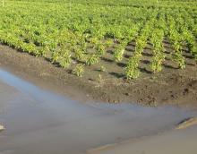 Many growers tile poorly drained fields to quickly move away excess water. Tiles generally empty out in a nearby ditch, but if not inspected regularly can become clogged with debris. Nearby trees such as poplar or willow can fill and clog tiles with their roots. Regular maintenance can help prevent a flooding condition.