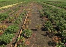 Many growers tile poorly drained fields to quickly move away excess water. Tiles generally empty out in a nearby ditch, but if not inspected regularly can become clogged with debris. Nearby trees such as poplar or willow can fill and clog tiles with their roots. Regular maintenance can help prevent a flooding condition.
