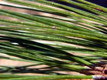 Symptoms of ozone injury on Ponderosa pine include a chlorotic-needle mottle, which develops from the tip to the base on older needles. These symptoms are followed by a necrotic-tip dieback. The oldest needles become senescent and turn a uniform-tan color. Normal needle retention is for 3 to 5 years but ozone-affected needles are cast prematurely leaving the chlorotic-mottled one-year-old needles on the tree. Eastern white pine is very sensitive where symptoms start with minute, silver flecks radiating from the stomata of current-year needles. These tiny flecks develop into larger chlorotic flecks. These may develop into pink lesion and bands that spread to the needle tips. Normal needle retention is for 3 years but the resulting needlecast leaves only current-season needles.