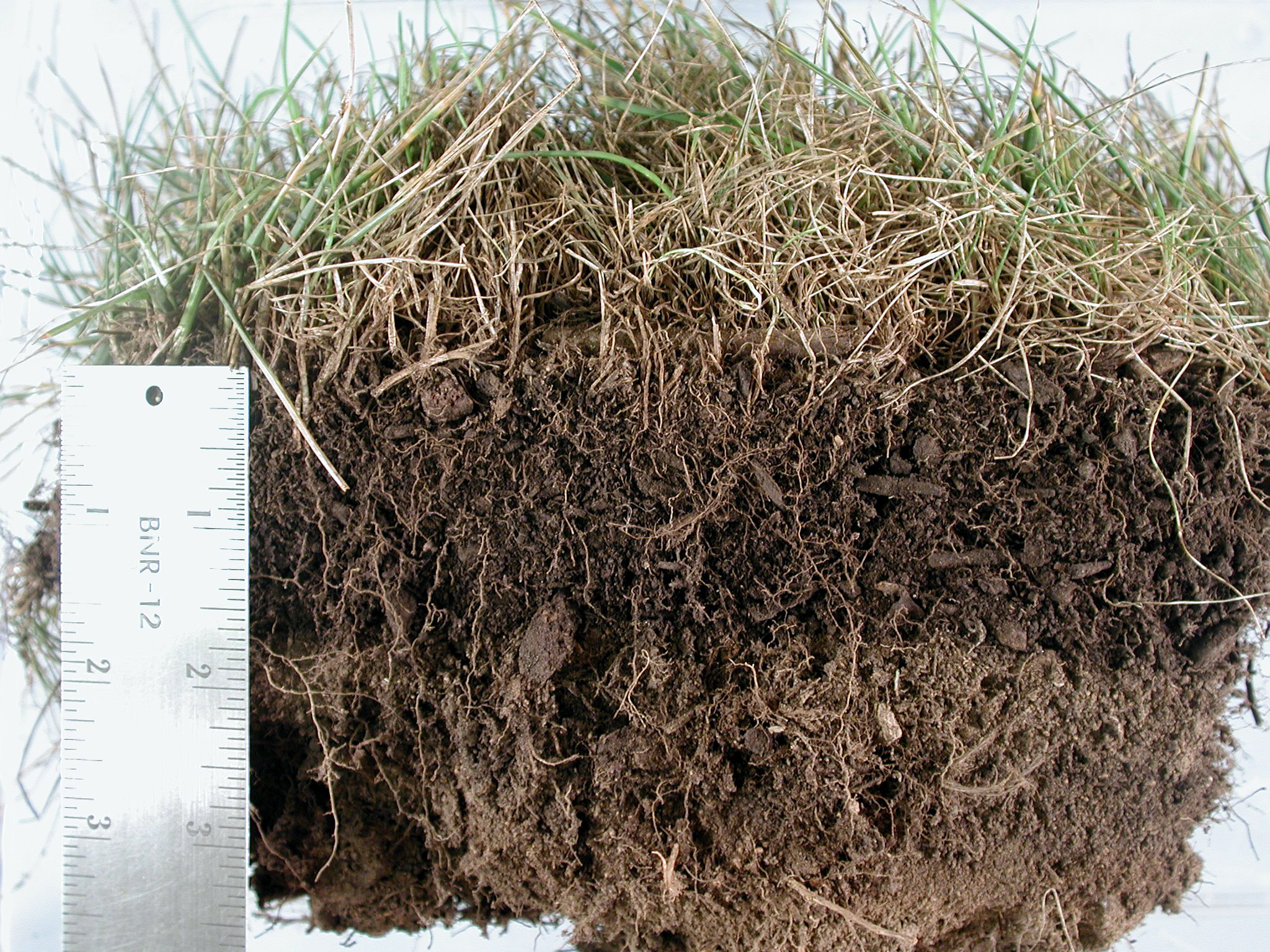 The tightly intertwined layer of plant litter (lawns and turf) from accumulations of undecomposed or partially decomposed plant residues.