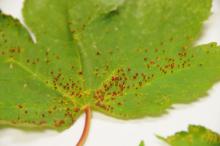 - Eriophyid mites cause infested tissues to "balloon" such as maple bladder gall mite or linden nipple gall;