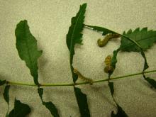 Pest monitoring Use yellow sticky traps to monitor adult sawflies. Watch for the appearance of the eggs clustered in little "pita pocket" slits in the leaves or for droppings on underlying leaves. Look for the gregarious larvae lining the leaf edge, or leaf damage along the margin. Leaves, chewed so thoroughly that only the midribs remain, are diagnostic for sawfly damage. Watch for future generations.