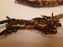 Pest monitoring Inspect twigs and tissues during the dormant season for scale insects. Pay attention to sickly plants and those with low vigor. The newly emerged crawler is the stage most susceptible to chemical control. Monitor for crawlers by wrapping a piece of sticky tape around an infested branch with the sticky side out. The red crawlers are very small and best observed with a 10X magnifying glass.