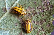 Pest monitoring Watch for emerging adults in spring then watch for small circular holes or skeletonizing of the tender new leaves as larvae feed. Best control is achieved when larvae are small and before damage is severe.