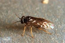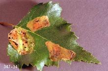Sawflies-The adult sawfly insects are generally small thick-waisted wasps, often black and about 0.25 inch long. The larvae are small, and light colored. The larvae feed between epidermal layers, creating large dark blotches in the leaves. After the insects leave, the affected areas turn light brown and crinkle. Aside from the effects on the appearance of the foliage, some defoliation and weakening of the tree can occur.