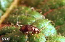 Pest description and crop damage Three species of flea beetles-the tobacco flea beetle (E. hirtipennis), the tuber flea beetle (E. tuberis), and the western potato flea beetle (E. subcrinita)-are known foliage feeders in PNW potato fields, especially west of the Cascades. Of these, only the tuber flea beetle seriously injures potato tubers.